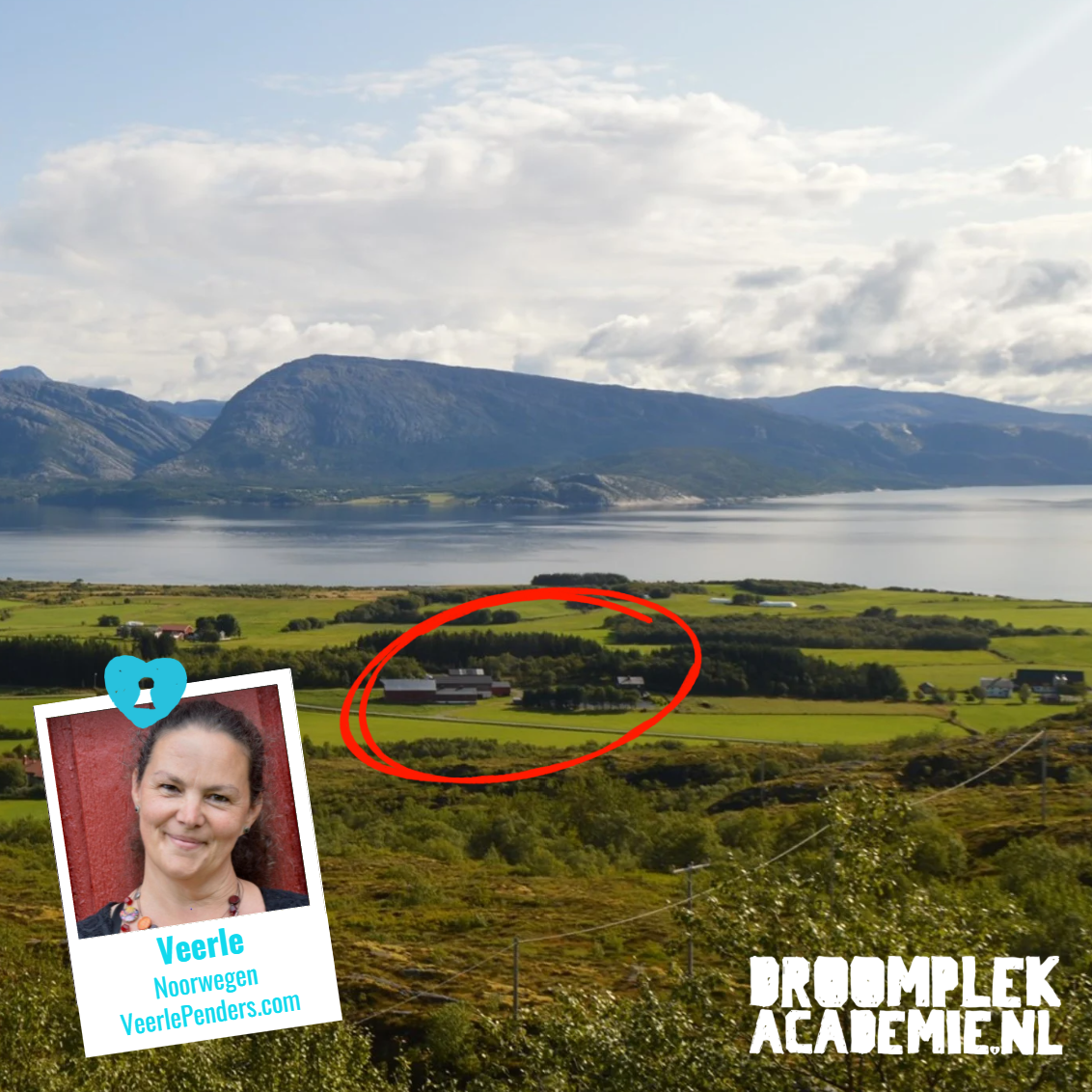 In 2019 klopt Veerle aan bij de DroompleAcademie: 'We hebben een boerderij op een eiland in Noorwegen gekocht en willen er gasten gaan ontvangen: help, wat nu?' Vooral zichtbaar zijn vindt ze lastig. Veerle runt daar inmiddels vanuit passie haar vitaliteitsboerderij. Ze verbouwt veel eigen groenten en fruit. Ze helpt - vrouwen 40+ vitaal te worden én te blijven, online en op haar droomplek voor retreats.